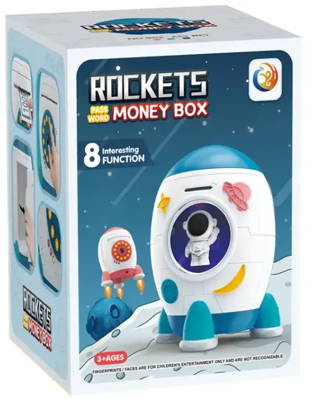 Електронна скарбничка-сейф 852A у формі космічної ракети стане чудовим помічником для зберігання заощаджень вашої дитини! Цей міні-сейф створений для юних дослідників всесвіту, поєднуючи оригінальний дизайн і безліч цікавих функцій.