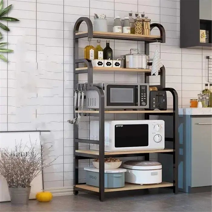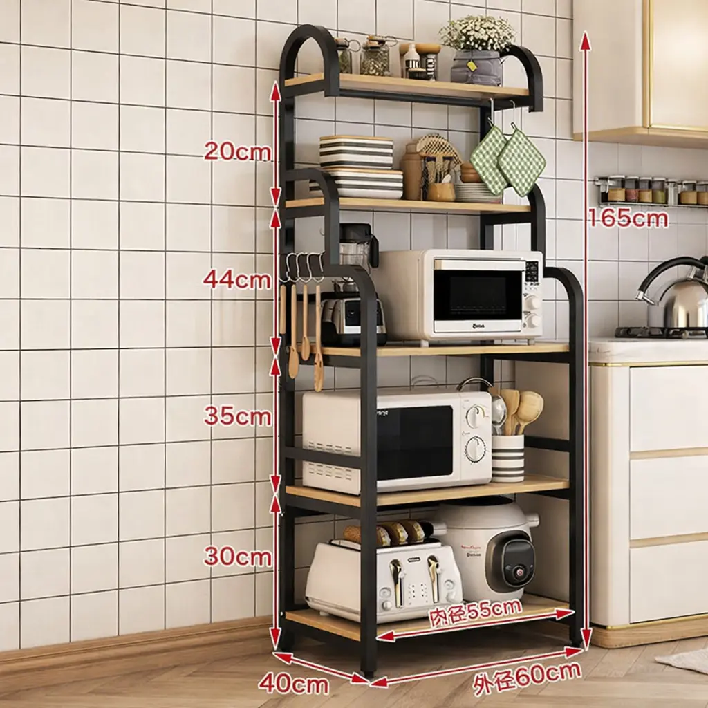 5 містких полиць - для мікрохвильової печі, тостеру, мультиварки, посуду та банок.