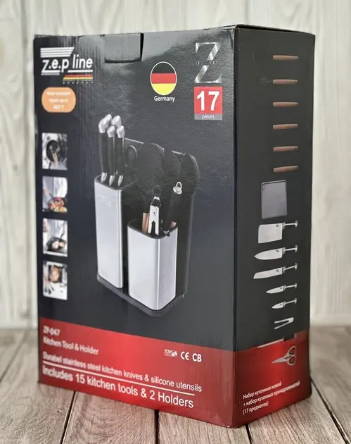 Набір кухонних ножів та приладдя Zep-Line ZP-047 на підставці 17 предметів