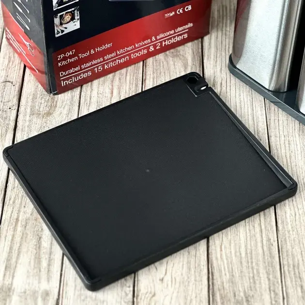 Дощечка для вирізки продуктів із харчового пластику товщиною 1 см та розміри 28 х 22 см;
