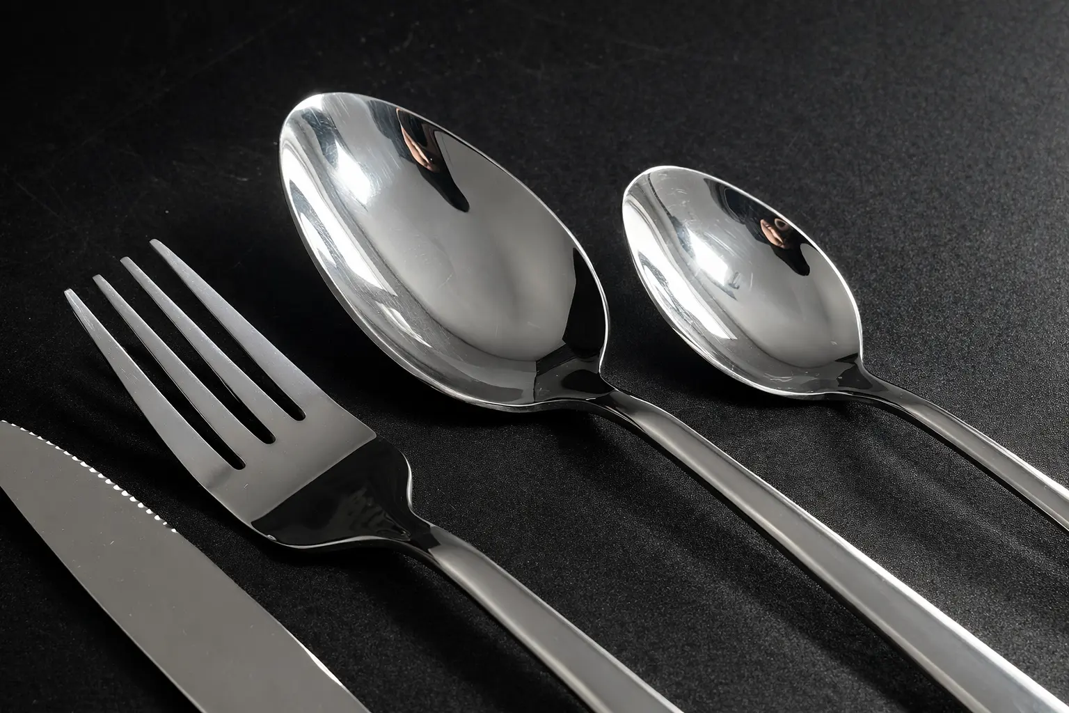 Столові прилади 20-2 – це поєднання сучасного дизайну, елегантності та практичності. Оригінальна текстура на ручках не тільки привертає увагу, але й забезпечує комфорт у використанні. Лаконічний металевий блиск гармонійно доповнює як класичне, так і сучасне сервірування, надаючи столу стильного та завершеного вигляду.