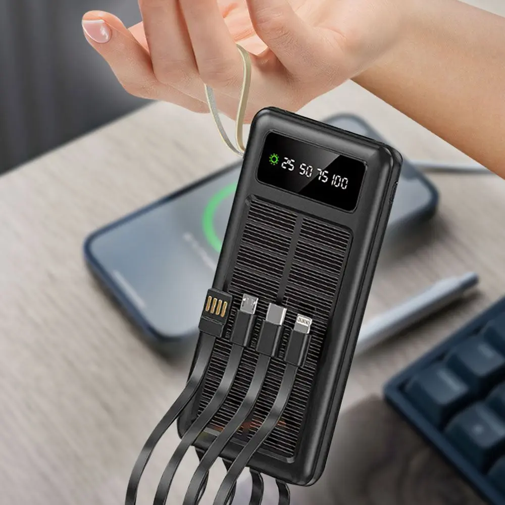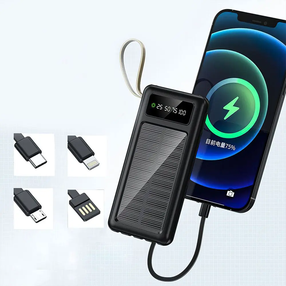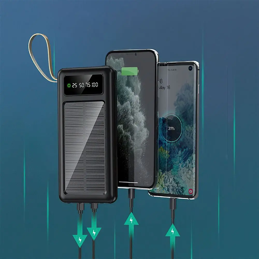 Повербанк 50000 мАг із сонячною батареєю Y90, зовнішній акумулятор із 3 зарядними кабелями (micro USB, Type-C, iPhone Lightning)