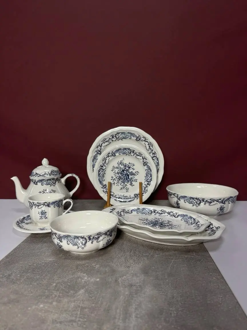 Столовий сервіз DY01 – це витончене поєднання елегантності, якості та практичності. Ніжна біла порцеляна з блакитним орнаментом створює відчуття свіжості, легкості та бездоганного смаку. Візерунок нагадує тонке мереживо, надаючи сервіруванню особливий шарм і романтичний настрій.
