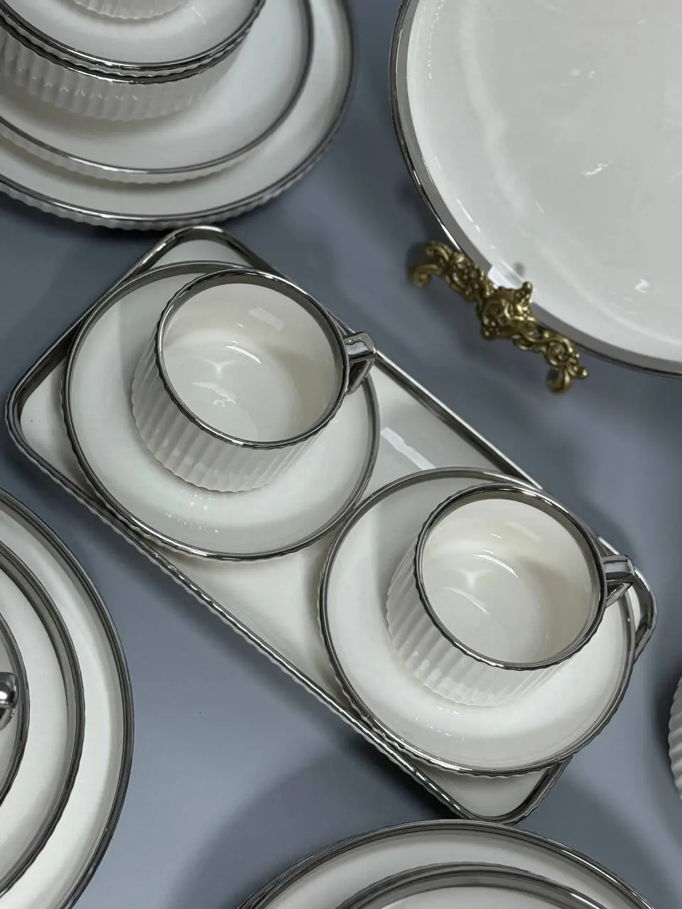 Столовий набір посуду тарілок та чашок RG6803 Silver – це вишукане рішення для тих, хто цінує елегантність та якість у повсякденному житті. Цей фарфоровий сервіз на 6 персон, що складається з 32 предметів, стане ідеальним доповненням до вашого столу, підкреслюючи стиль та смак у будь-якій обстановці.