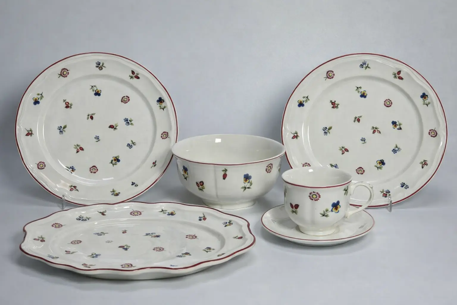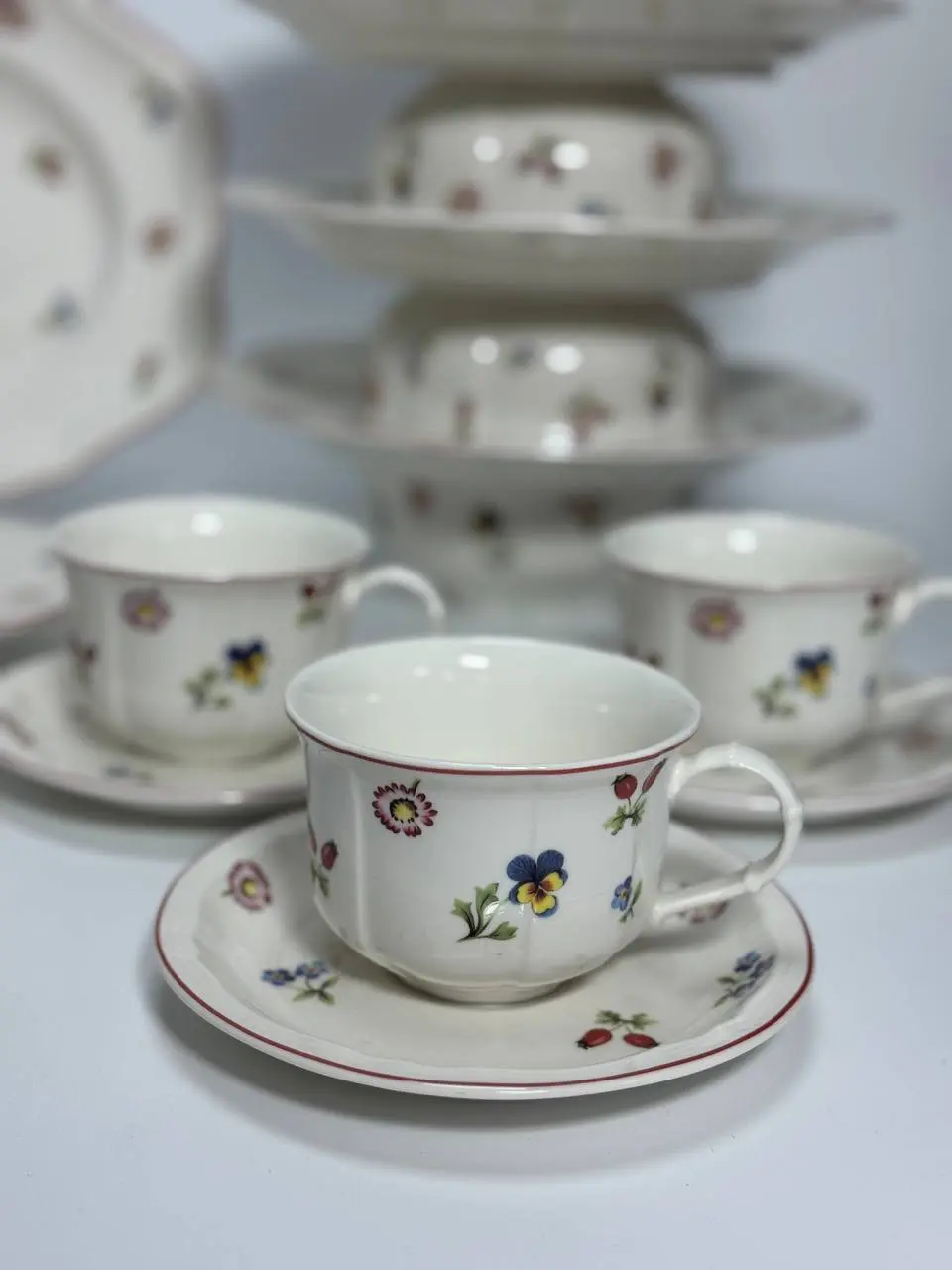 Столовий сервіз RG 1117 — створений для тих, хто любить стриману класику з живими акцентами. Ніжний кремово-білий фарфор прикрашений делікатними візерунками, що нагадують весняний сад, а акуратна червона лінія по краю додає благородності та чіткості формам.