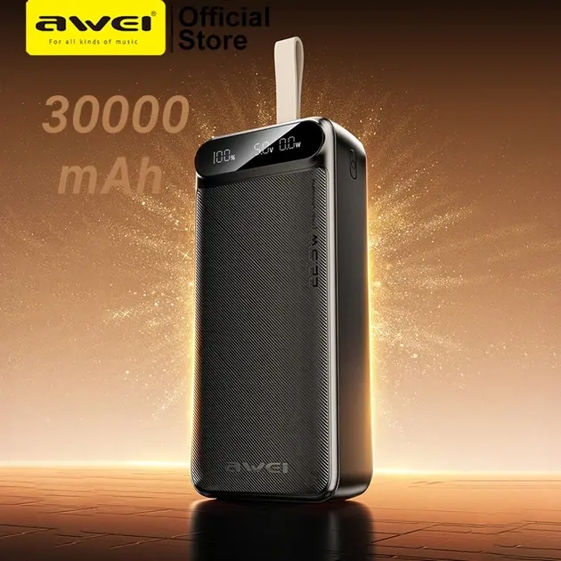 Зовнішній акумулятор Power bank Awei PA12 30000mAh PD22,5W швидка зарядка