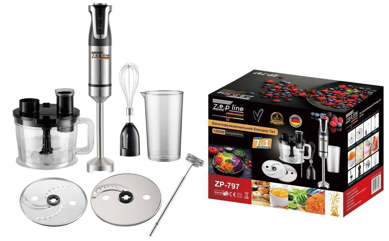 Універсальний блендер занурювальний 4в1, R 331W, 800 Вт / Кухонний ручний блендер з насадками та чашею